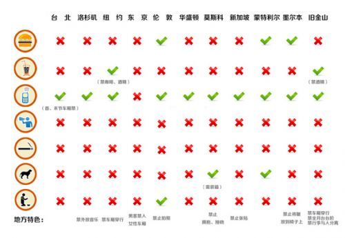伦敦:英国伦敦地铁虽然繁忙,但并不拥挤。在每个工作日的高峰时段,在地铁自动检票口、上下电梯处以及上下车厢前,人们通?;嶙跃跖哦?、很少有人争抢。伦敦禁止乘客在地铁里抽烟和喝酒,但是对禁止吃东西没有明文规定。