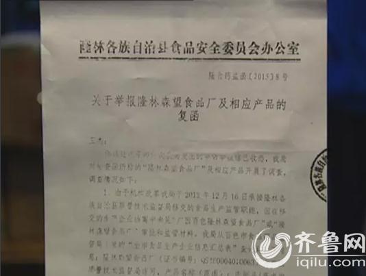 随后,记者又联系上了森望食品厂所在的广西隆林县食药局。接到举报后,广西隆林县食药局的工作人员到生产厂家进行了调查,随后也给我们发来了调查图片,我们看到牛肉干的生产厂家:森望食品厂已经荒废,在隆林食药局的回复函中,清晰地写到,早在2014年的12月份,牛肉干的生产许可证编号就已经过期,而在2014年6月,隆林森望食品厂就已经处于停产状态,因此,王大哥所购买的牛肉干肯定不是在这个工厂里生产的!