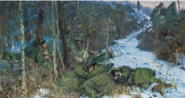 1949年以后,现代主义以“现实主义”为内容,以“油画民族化”为方式,开始了一段特殊历史时期的发展,此时的艺术家开始用最为通俗的手法及题材,完成艺术服务大众的审美功能。嘉德本次秋拍新中国时期之后的美术部分重点推出了何孔德的《枕戈待旦》,何孔德的作品大部分均珍藏于博物馆之中,此次这件作品原本是捐赠给军事博物馆的作品。
