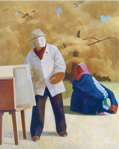 石冲创作中的现代观念,源自其作品中隐藏的隐喻性的东西,通常大家会将其归为超写实艺术,但作品中的装置的、摄影的观念性才是艺术家表现的主题。将于嘉德夜场现身的《欣慰中的青年人》中,人物从头到脚灌注乳白色液体,手拿一只被拔去羽毛的鸟类,面部露出一股尴尬的笑容,画面对象呈现出的这种陌生感和距离感,转换了油画的传统观念,以鲜明的形象符号表达了艺术家对人类生存状态的强烈关注。据悉,此件拍品曾于2007年以1131.2万元拍出,近10年后再次现身于市场,令人期待,据悉本件作品为估价待询。