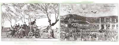 行驶在明陵道上的马车。中山陵园全景广告图。