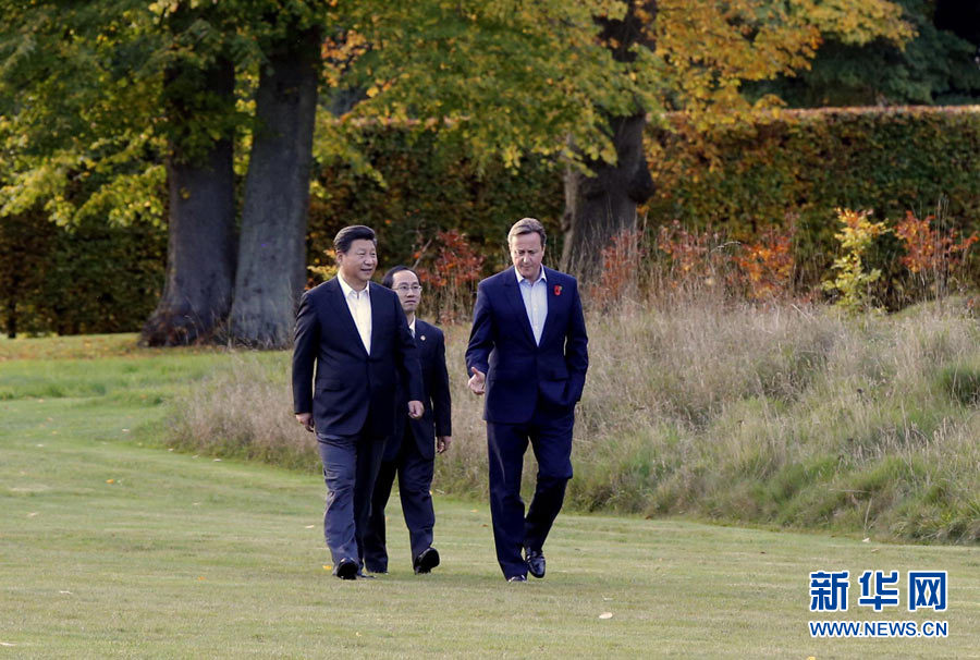 据英国广播公司报道,当地时间10月22日下午,英国首相卡梅伦以英国式的待客方式,请中国国家主席习近平在契克斯庄园附近的酒吧一起去“喝一杯”。习近平曾表示愿意在访问英国的时候喝一杯英格兰传统的黑啤酒,卡梅伦于是尽地主之谊。