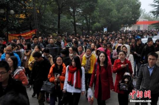 资料图:2014年11月30日,2015年国家公务员考试拉开帷幕,在安徽中药医科大学考点,考生们从容迈进考场。中新社发 韩苏原 摄