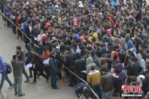 资料图:2014年11月30日,2015年中国国家公务员考试开考。图为山西太原一处国家公务员考试考点,考生们有序入场。中新社发 武俊杰 摄