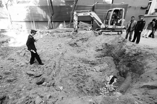 昨日下午,记者来到事发地点东城区青龙胡同10号院,进门右手边一处空地,已被挖出深达1米多的坑,一辆挖掘机停在坑旁。左手边的四大间平房,门窗朝北,房屋外观已出现不同程度的裂痕。