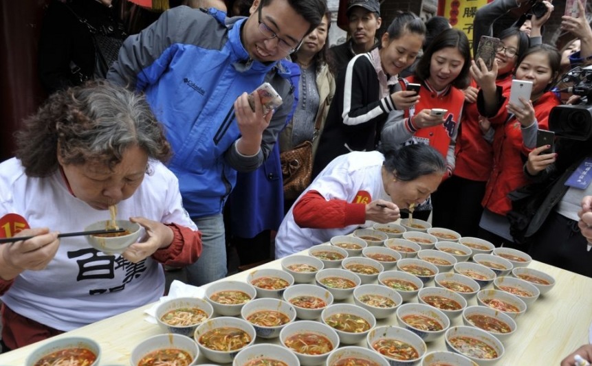 关键词:游客吃面获白吃证 吃面大赛 面大大