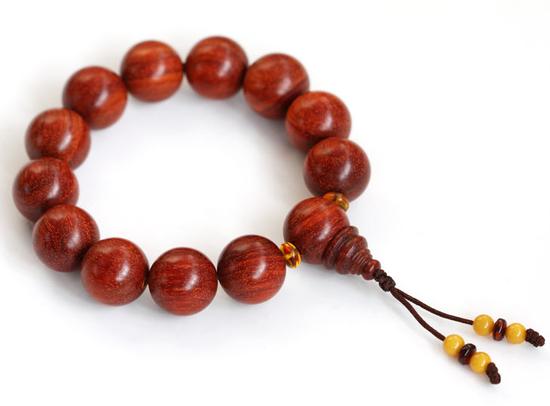很多朋友在用棉布盘玩或者把玩小叶紫檀的手串、念珠、手把件等物件时都会遇到白色棉布、手腕被染红的现象,而对物品材质起了疑问:掉色了?是不是假的?上面染色的?