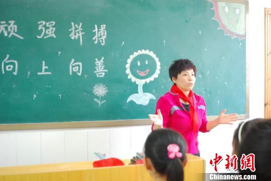 图为邓亚萍在课堂上与孩子们分享奋斗经历。赵琳露摄