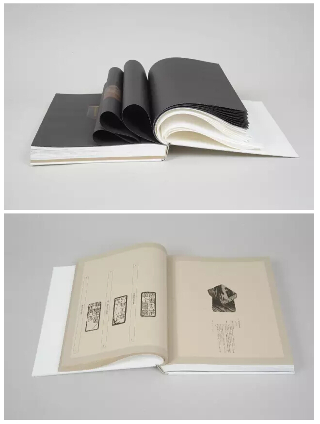 前扉多层阶梯式的设置,让信息层层递进使阅读富有趣味。照片拍摄极为用心,讲究物像虚实和透视关系,摄影用光及投影处理细致,图型切割截取巧妙。设计师利用纸张的透明度,反面印刷的篆刻拓片以多种方式,多个角度在书页的折叠中丰富地呈现出印章信息。十方印章的简洁内容通过讲究的编辑设计语言大大扩充了信息体量和内涵的传达。