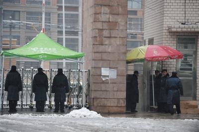 11月6日,北京科技经营管理学院大门口,多名保安严查出入者的身份。