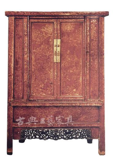 (一)清中晚期 红漆描金山水人物图方角柜(图1-1)