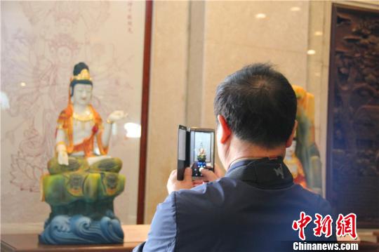 凑近玻璃展柜,时不时拿起手机拍照的雕像爱好者李仁栋告诉记者,“这些雕像太漂亮了,不少作品的色彩和构图都打破了程式,赋予了观音形象更多元的表达,希望更多的人能感受到观音文化的向善力量,传达温暖和慈悲。”