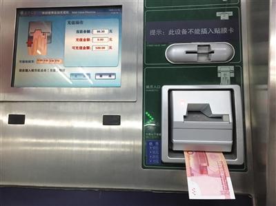 昨日,四惠地铁站,记者用新版人民币百元纸币为一卡通充值,未成功。新京报记者 薛珺 摄