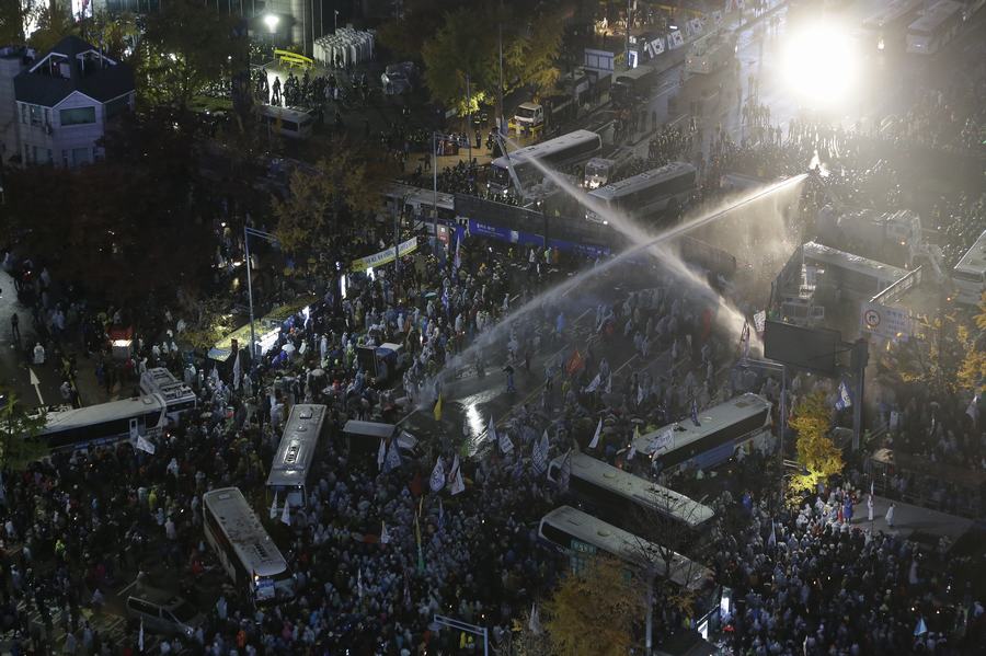 很多示威者高呼“朴槿惠,下台”的口号。示威者在接近总统府时,其中一些人试图冲过警方的警戒线,安全部队施放了催泪弹。目前导致一名示威者重伤,还有多人受伤,并有多人被捕。