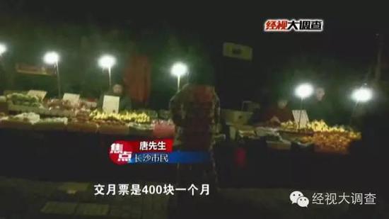 近日,长沙市民唐先生向经视大调查爆料,在长沙市雨花区井湾路环保学院附近的一个夜市规范点,每到晚上七八点,就会出现一对穿着随意的夫妻向夜市摊主们收取费用,一天15元,一个月280元到400不等。