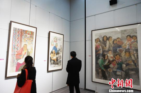 11月16日,甘肃省文化产权交易中心在兰州揭牌成立。图为揭牌后的书画展?!⊙钛廾簟∩?/strong>