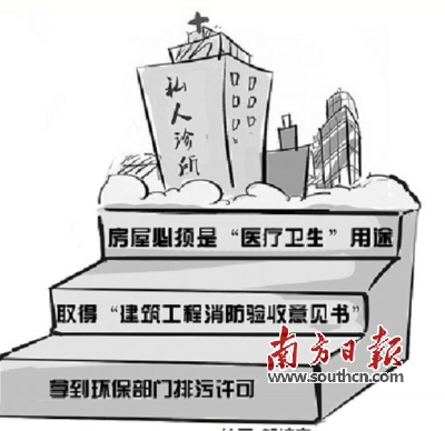 对此,惠城区卫计局回应,相关事项都是依照现时有关法律法规的要求进行行政许可,不存在人为提高准入门槛的情况。根据《卫生部关于医疗机构审批管理的若干规定》,开办医疗卫生机构使用的房屋必须是“医疗卫生”用途,不属于“医疗卫生”用途的,要求变更房屋用途。