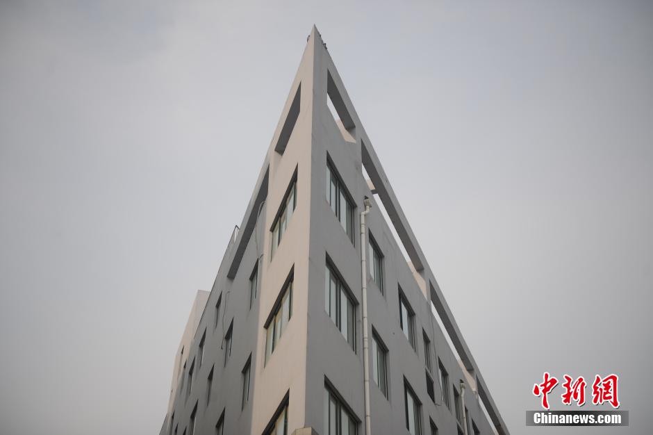 2015年11月17日,在济南土屋路上,一幢写字楼看起来神似薄如纸片的“纸片楼”。这栋大楼有5层,从大楼的东侧与西侧看过去,整栋大楼变成了薄薄的一张“纸片”,而楼的东侧墙角却仅有20公分宽,从视觉上吸引众路人的眼球,并称作“纸片楼”。图片来源:视觉中国
