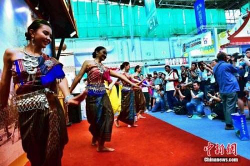 资料图:2015中国—东盟博览会旅游展5月29日在广西桂林市开馆,展会上,各国旅游部门开展了丰富多彩的活动,全面展示当地的独特魅力和旅游风光。中新社发 唐梦宪 摄