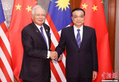 资料图:2014年11月10日,中国国务院总理李克强在北京人民大会堂会见马来西亚总理纳吉布。中新社发 杜洋 摄