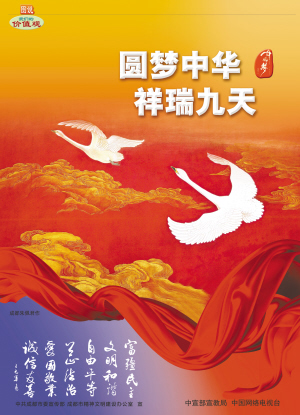 江溶说,朱先生有一次看电视,看到红霞满天的场景,突发灵感,创作了这幅国画。去年成都市文明办征集社会主义核心价值观主题公益广告作品,成都画院选送了十多幅作品,其中就包括这幅《圆梦中华 祥瑞九天》,最后该作品入选中宣部宣教局“图说我们的价值观”公益广告通稿。