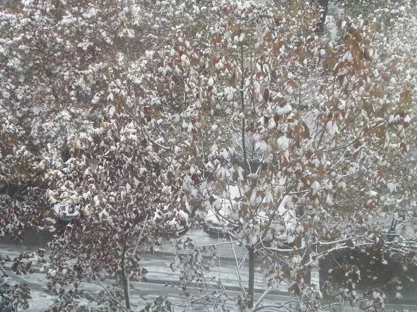 22日6时许,北京中关村附近路面湿滑,天空出现小雪花。