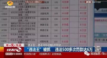 11月20日,省交管局公布,历经多年交警终于将一辆省内排名靠前的怀化“违法王”给抓到了。这台违法的车辆在8年时间里,违法500多次,扣分达到1408分,??罹透叽?万元!这位司机胆子还挺大,肆无忌惮地开着这违法小车,甚至还去接亲,在接亲路上被交警接走。