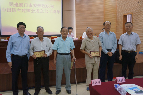 庆祝大会上,民建厦门市委对90岁以上的资深老会员进行表彰。