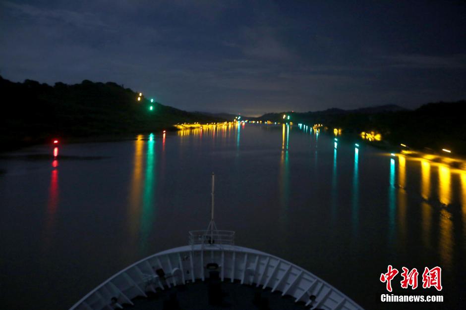 当地时间11月23日凌晨4时20分许(北京时间11月23日17时20分),正在执行“和谐使命—2015” 任务的中国海军和平方舟医院船顺利通过巴拿马运河进入大西洋,计划11月27日抵达该任务第五站巴巴多斯布里奇敦。这是和平方舟第三次通过该运河。图为和平方舟医院船航行在盖拉德水道。中新社记者 江山 摄