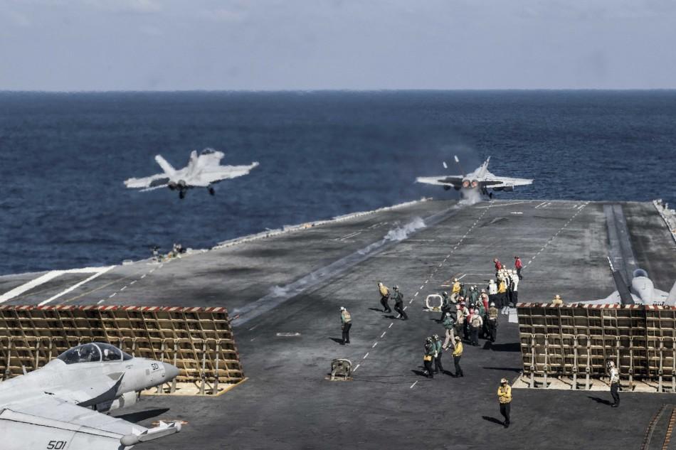 11月12日,美国海军“里根”号航母战斗群在中国南海附近进行实战训练。