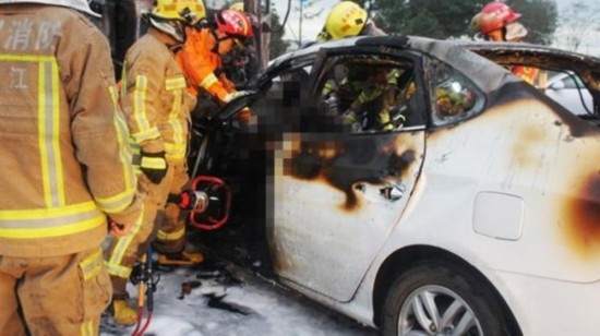 村民们起来一看,旁边104国道老收费站附近,两辆车撞在一起,已经起火。