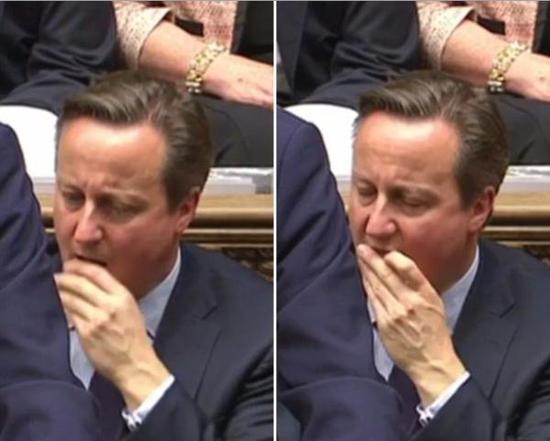 当地时间25日,英国财政大臣奥斯本向英国议会提交新的政府“开支审查报告”(Spending Review)并做报告陈述。在其做陈述时,坐在他身后的英国首相卡梅伦偷吃糖果的画面被摄像机“逮个正着”。