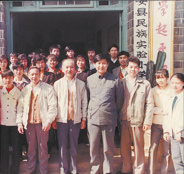 时任宁德地委书记习近平到福安坂中乡仙岩村考察福安民族实验小学。(资料照片)