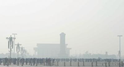 昨天,雾霾中的天安门广场。京华时报记者赵思衡摄