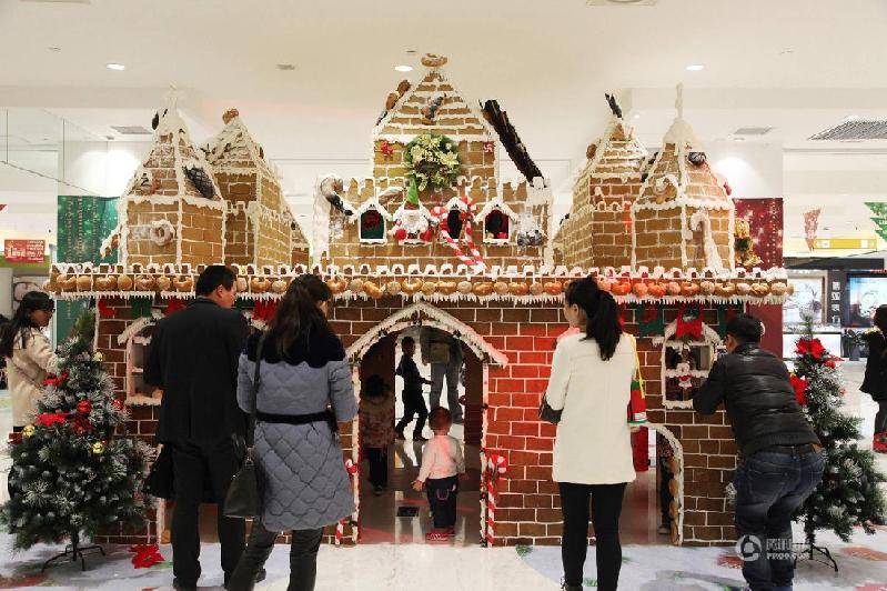 图为西安诞生陕西最大“饼干豪宅”,高3米多,可“住”四口之家 。