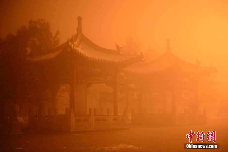 11月29日夜,呼和浩特雾霾锁城,晚间至次日凌晨空气污染最为严重。市内部分环境监测点污染数据显示:空气质量指数AQI为500;细颗粒物PM2.5指数峰值为655,属严重污染级别。 中新社记者 刘文华 摄
