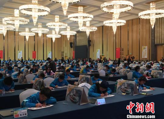 第24届世界脑力锦标赛中国总决赛30日在江苏昆山举行,来自全国各地的541名脑力运动选手将角逐中国“最强大脑”。图为“人名和头像”项目比赛现场。 黄莹 摄