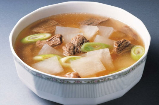 北京中医王国玮:冬季养生食疗第八款:萝卜羊肉汤。用料:羊肉500克,白萝卜300克,盐。制法:羊肉切块洗净加黄酒、生姜片浸半小时,入油锅爆炒一下,倒入砂锅内,加 水煮沸后用小火煨半小时;再将白萝卜切块,入在水中煮沸捞出加入羊肉汤内,放盐用小火煨至萝卜羊肉均酥烂即可。功效:有补脾肾、壮筋骨、御风寒作用。