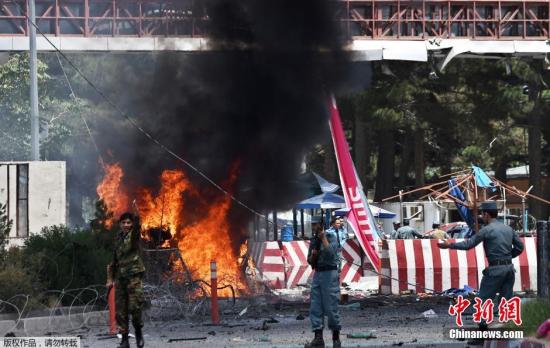 资料图:当地时间2015年8月10日,阿富汗喀布尔,喀布尔国际机场的入口环岛路处发生一起自杀式汽车炸弹袭击。