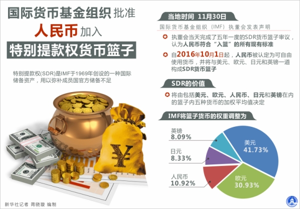 国际货币基金组织批准人民币加入特别提款权货币篮子。新华社记者 胥晓璇 编制