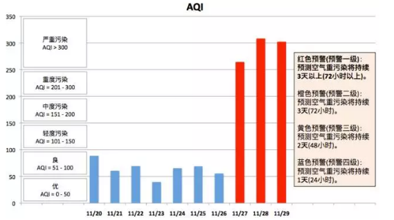 绿色和平通过分析实际数据发现:过去三天空气重污染程度已达到红色预警标准。