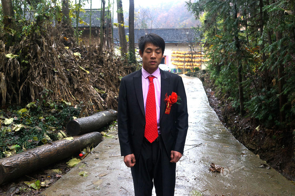 44岁的何开宏家住陕西省商洛市山阳县石佛寺镇,身患尘肺病多年,在知道自己快不行后,他给20岁的儿子订了婚,希望能在闭眼前看到儿子娶上媳妇,但他在婚礼前一天闭上了眼。图为何开宏的儿子?;瘫钦?胡国庆/视觉中国
