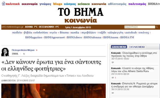 此报道一出,舆论一片哗然。然而,希腊驻中国大使馆今日致电本网,直指该报道系“假新闻”,并不属实,恐有误导作用。希腊驻华使馆表示,该报道声称是基于拉索斯(Lazos)教授的采访写成。然而拉索斯教授本人于11月27日接受希腊《论坛报》(ToVima)采访时表明,他从未对英国《泰晤士报》表示过“希腊女性以性行为交换食物”的观点。