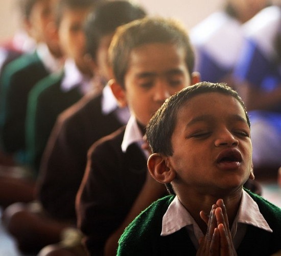在印度一所收容学校里,几名艾滋病儿童正在进行晨祷。由于有太多艾滋病孤儿被遗弃,该校的收容人数一直处于过饱和。印度卫生部2009年报告显示,过去3年内印度儿童感染艾滋病的人数,从2006的2253人上升至2009年的52973人,涨幅达20倍之多。