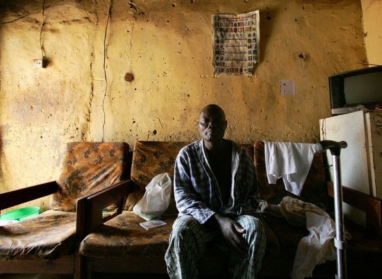 50岁的乌干达艾滋病感染者FredWenwa在坎帕拉的家中等待救治。乌干达是非洲艾滋病疫情最严重的国家之一,在美国等各界援助下,该国的艾滋病感染率曾在2005年时由以往的30%降至6%左右,一时成为非洲抗艾的榜样。而此后经济?;率垢鞣皆杓?,乌干达的艾滋病感染率恢复了原先的高位。