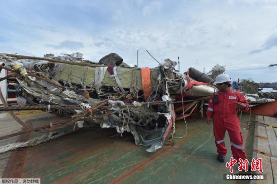 资料图:当地时间2015年3月2日,印尼雅加达,印尼坠毁亚航8501号班机残骸。