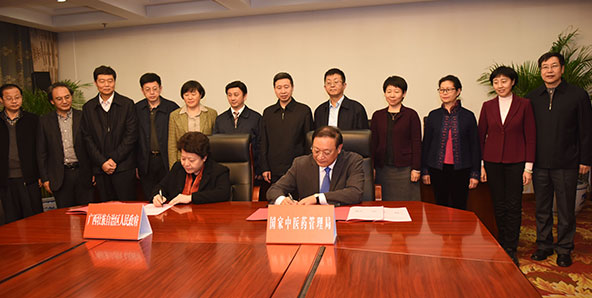 当日,国家卫生计生委副主任、国家中医药管理局局长王国强、广西壮族自治区党委常委、政府副主席李康分别代表双方签约。广西壮族自治区政府副秘书长吴建新、教育厅副厅长杨伟嘉、卫生计生委副主任、中医药局局长王勇,国家中医药管理局副局长王志勇及局相关部门负责同志,广西中医药大学党委书记尤剑鹏、校长唐农参加签字仪式。