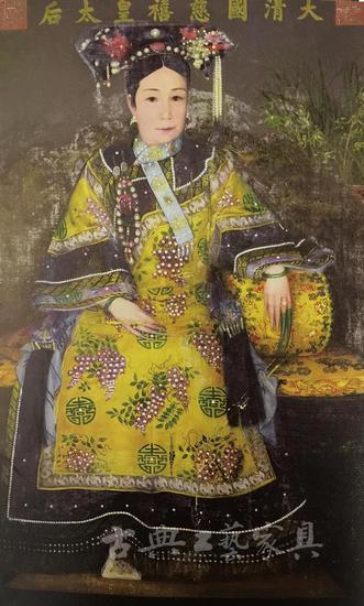 美国画家卡尔曾为慈禧绘过多幅油画像,此为其中一幅?;械拇褥笃し粝溉?,衣冠和佩饰则反映了晚清时后妃的服饰制度。可以看到,一串珍珠手串并非把玩在手中,而是被挂在慈禧太后的腋上方的襟钮上,反映出当时手串的另外一种佩戴方式。