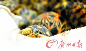 昨日,记者从广州市森林公安分局获悉,民警经过一个月的侦查,在广州白云机场侦破一起情节特别严重的非法收购、运输、出售国家重点?;ふ涔蟊粑R吧锇讣?,抓获犯罪嫌疑人4名,当场解救来自马达加斯加的辐纹陆龟298只。