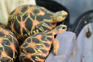 早已等候多时的民警此时迅速出动,人赃并获,当场控制了4名犯罪嫌疑人。298只辐纹陆龟交给广州市野生动物救护中心负责救治。